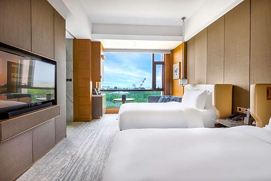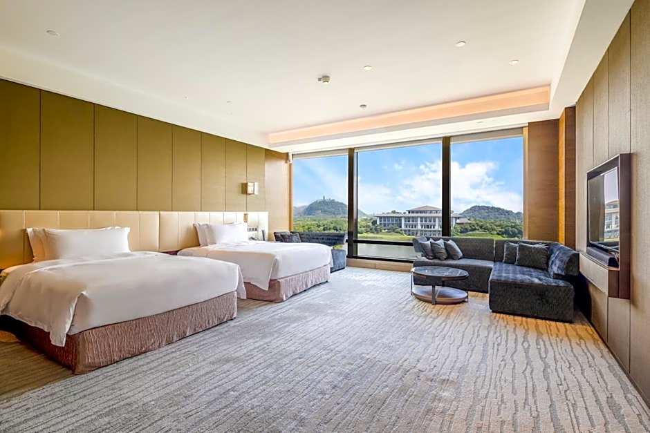 2 Double Premium Langshan River View is 646 square feet and includes 2 double beds 131-150 width plus hairdryer, safe, and bathrobes.